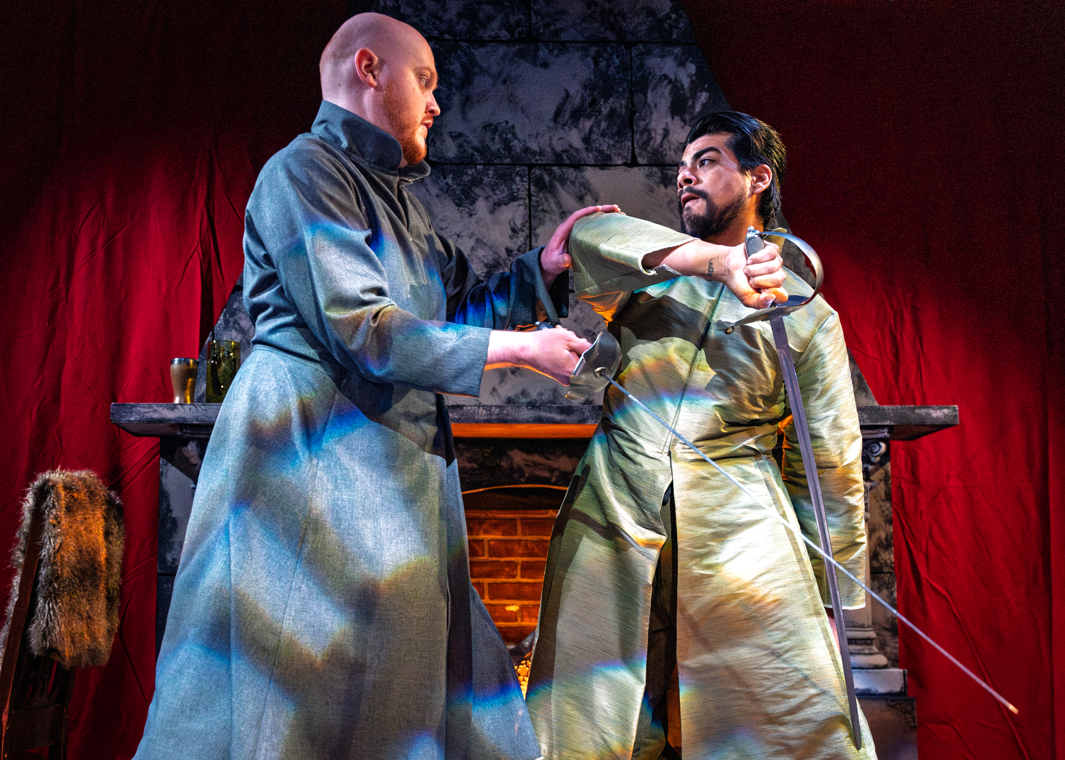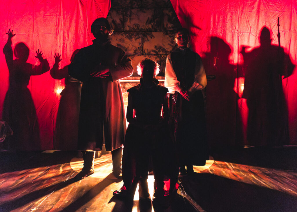 Brandon’s ensemble, led by the Countess, is terrific. Laura Jones Macknin (Countess) plays this to perfection. She strategizes and rationalizes with regal zest. In the midst of a passionate pontification, she stops abruptly with a snarky comment. Her evil act ceases suddenly as she snaps out of a trance. Macknin delivers impressive range between humanity and heinous -sometimes within a single monologue. Her witchy sidekick, Mara Kovacevic (Anna), brings a mysterious and stoic presence. She and Raul Alonso (Janos) are steadfast loyalists that display glimmers of palpable regret. Alonso is particularly impressive with wordless emotion. Macknin takes on everyone including the defiant Xavier Lagunas (Pal), bombastic Erik Schnitger (Gyorgy) and endearing Makenna Van Raalte (Irme).