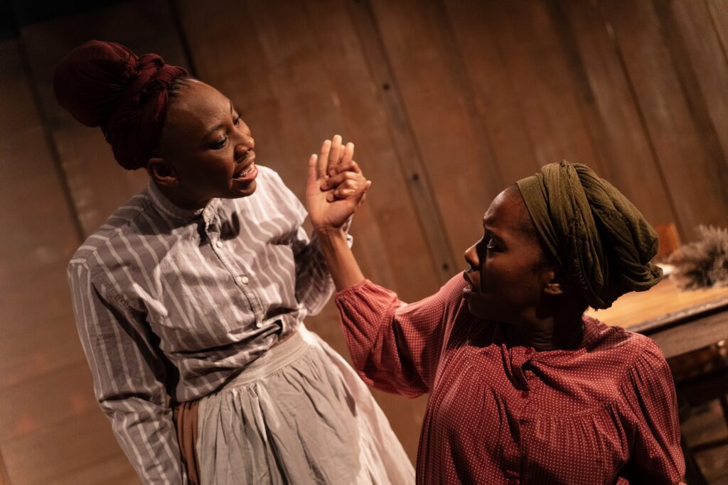 Under the skillful direction of Aaron Reese Boseman, the acting is excellent. A commanding Monique Marshaun (Sandra) begins the show with a blistering dissertation of her extensive African American studies and her current rage and disbelief that she is a victim of a hate crime. The next scene -and a century and half in the past, a fierce Shenise Danyel (Sara) bandages her brother, Makari Robinson-McNeese (Abner/Malik), from his war wounds while trying to persuade him to take her with him back to battle. Their exchange is both playful ribbing between siblings and a grim nod to the reality of their situation.