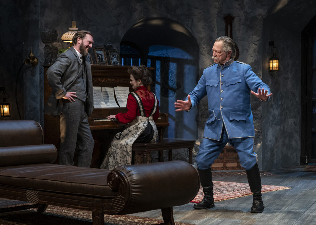 Under the masterful direction of Yasen Peyankov, this show is funny! Playwright August Strindberg penned a tale of domestic emotional abuse. In this new version by Conor McPherson, Peyankov has his talented ensemble lean into the humor. And Jeff Perry (Edgar) leans in hard to the absurdity. Perry is a hilarious standout. His blustery rants are comical. In the midst of one, he abruptly goes into a trance. His physical comedy is delightful buffoonery. At one point, he dances with unapologetic narcissism and oblivious ineptness.
