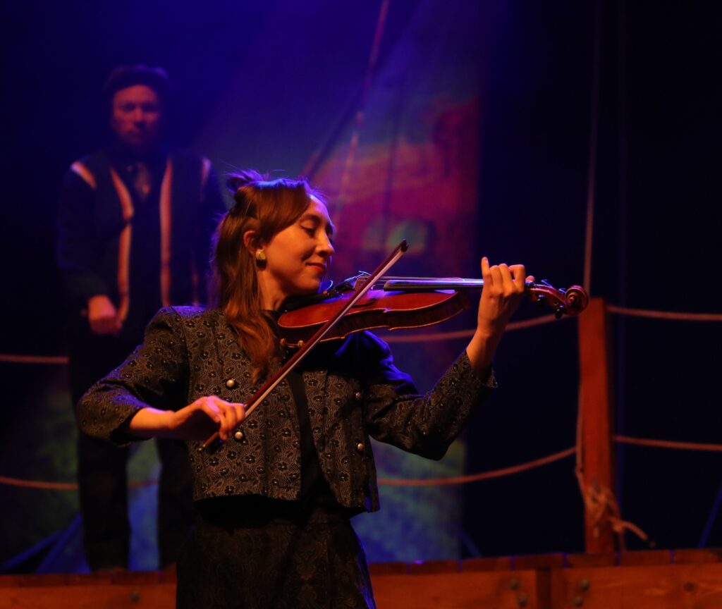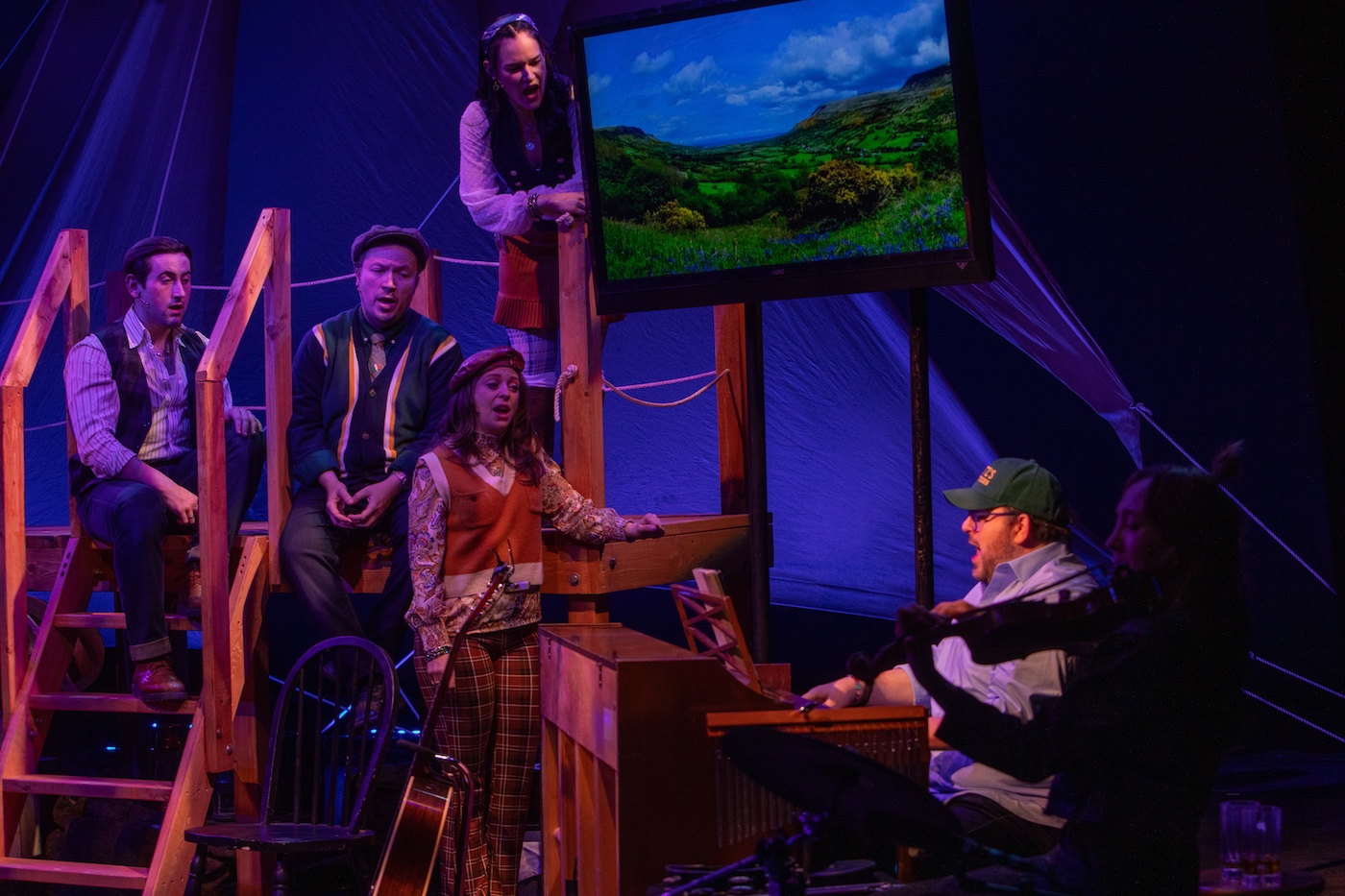 THE IRISH starts with an animated violin solo by Elleon Dobias. Her nimble bow work on the fiddle sets the tempo for fun. Dobias joins David Fiorello, who serves as both conductor and pianist, on the fringes of the set to make room for the ensemble. Michael Mahler, Leah Morrow, Emily Goldberg and Luke Nowakowski arrive ready to sing, dance and make merry. Individually and collectively, each croon and harmonize sweet melodies. For the more upbeat ditties, they match the mood by jigging, marching, dancing and even miming working on the railroad.