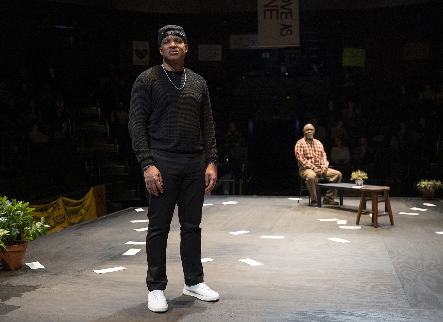 Playwright Tarell Alvin McCraney pens a contemporary tale of justice, identity and forgiveness. The heart of his story is a father grappling with loss. The soul of the story is a movement to stop oppression. McCraney beautifully weaves together the intimacy and the enormity of the heart and soul. The tale unravels with humor and passion. McCraney’s script is cuttingly astute. He starts loud, unifying the room in an interactive concert-like atmosphere. He concludes the play with a singular person humming in the darkness. In between, McCraney builds the case for prosperity, change and hope.